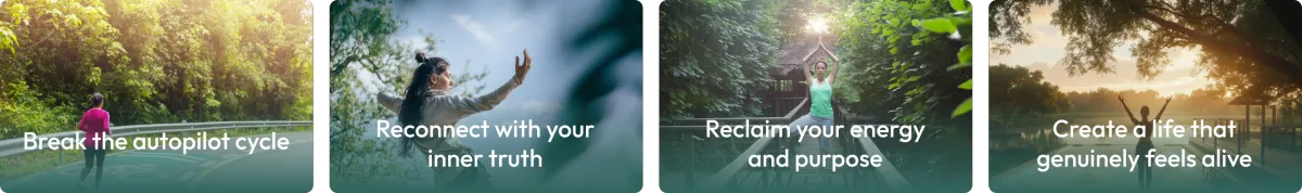 You begin living in authenticity — choosing what truly matters, stepping into your natural vitality, and creating a life that feels meaningful, alive, and your own.